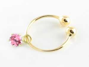 イヤリング ピンクサファイア イエローゴールド k18 レディース ノンホールピアス月 9誕生石 フープ式 18金 誕生石 一粒 ジュエル 天然石3.0mm